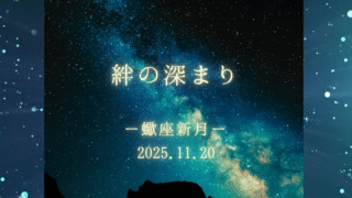 madokaの星庭 絆の深まりー蠍座新月 2025年11月20日 15時46分 東京太陽・月 蠍座28度11分 7ハウス新月には水星が重なり、思考と感情を示す天体が同じ一点に集まっています。1ハウスの天王星が真正面にあり、3ハウス蟹座の木星、11ハウス魚座の土星と海王星が水のグラン... 2025.11.17 madokaの星庭